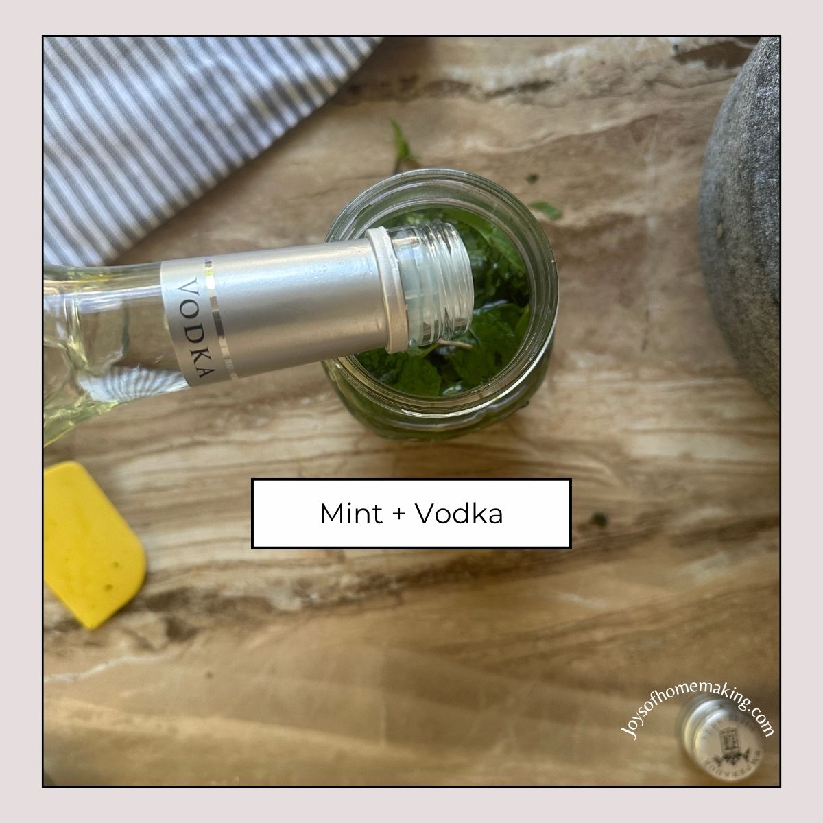 - Vodka (at least 80 proof — the alcohol extracts and preserves the mint oils). I used the cheapest brand.